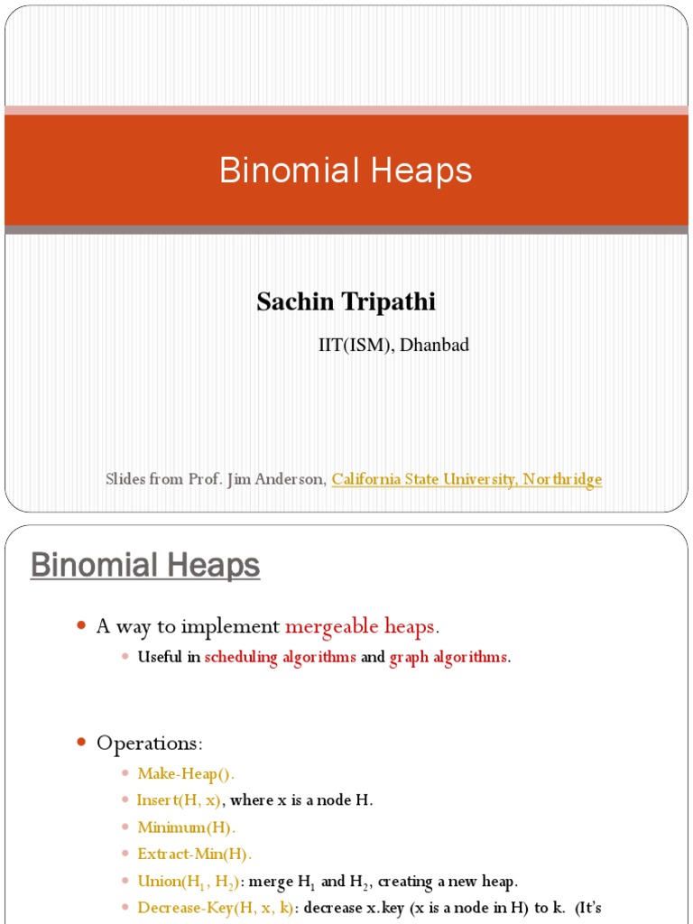 Binomial Heap: Collection of binomial trees (satisfying some properties).