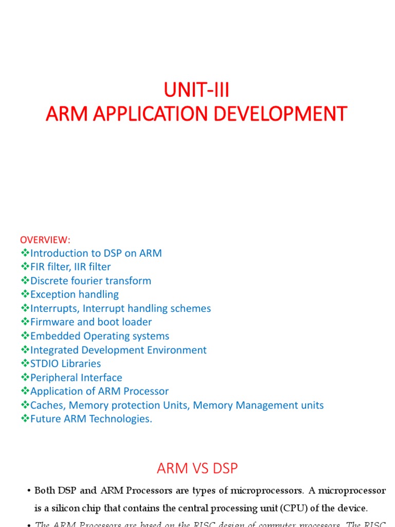 • Both DSP and ARM Processors are types of microprocessors. A microprocessor