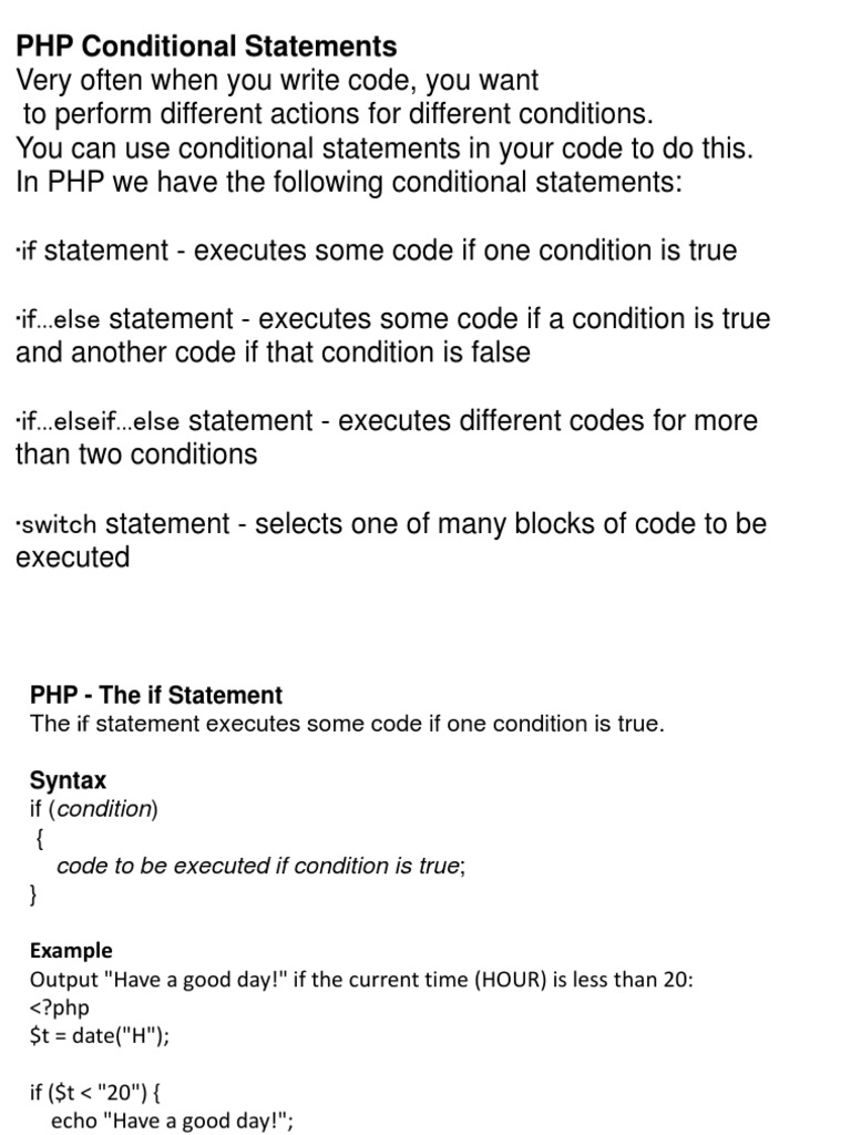 PHP Conditional Statements