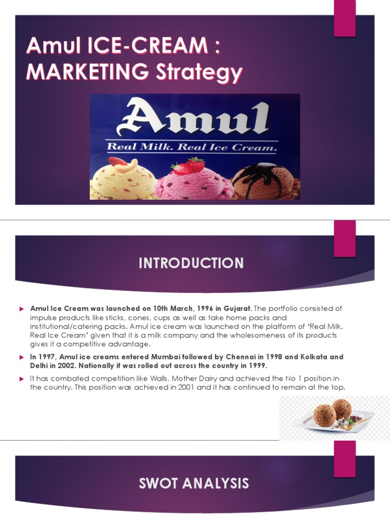 Amul Ice Cream was launched on 10th March, 1996 in Gujarat. The portfolio consisted of