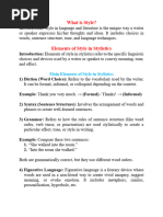 word choice, linguistic devices etc