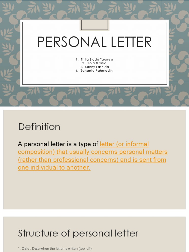 5. Body : The main part of the letter. It includes what you want to write to the other person.