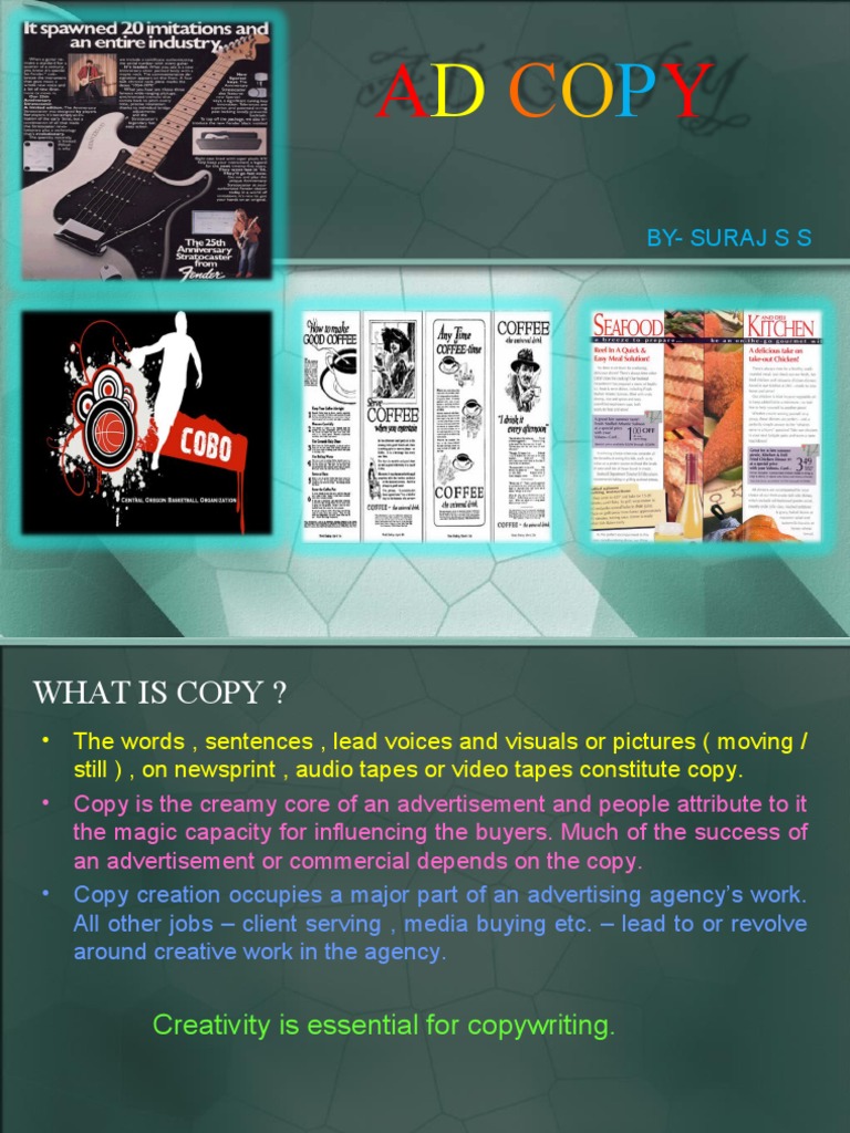 • Copy is the creamy core of an advertisement and people attribute to it