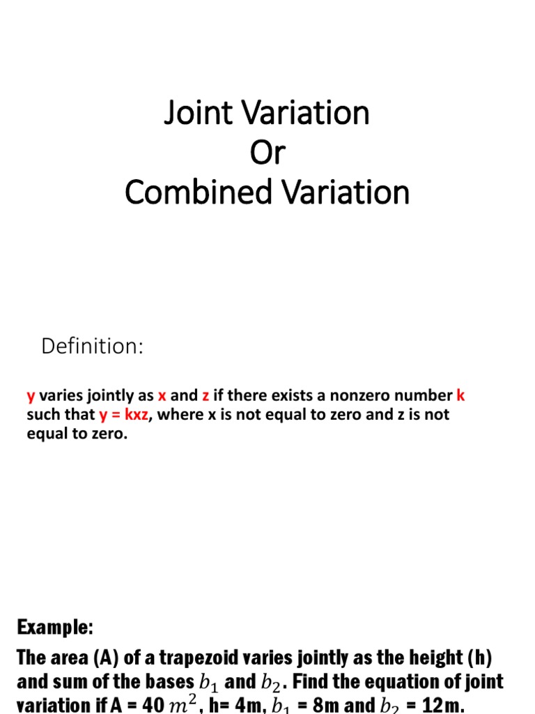 equation of joint variation if A = 60