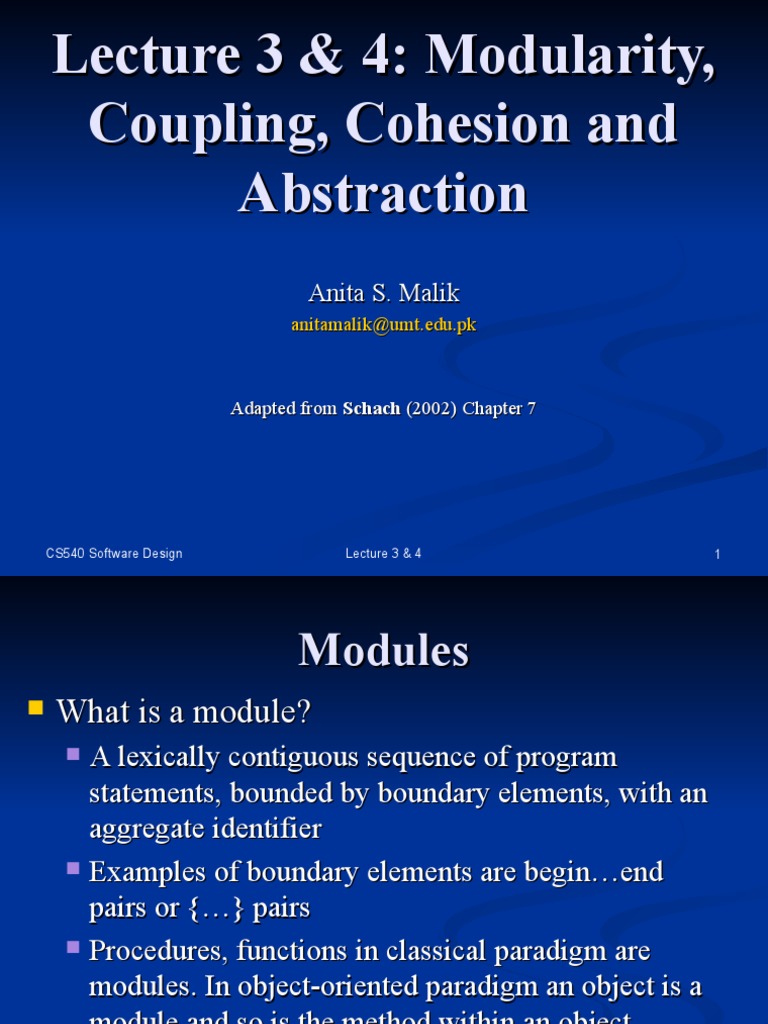 Lecture 3 & 4: Modularity,