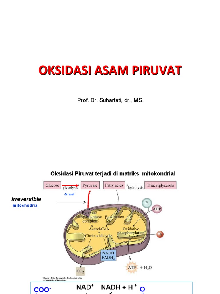 Oksidasi Piruvat terjadi di matriks mitokondrial