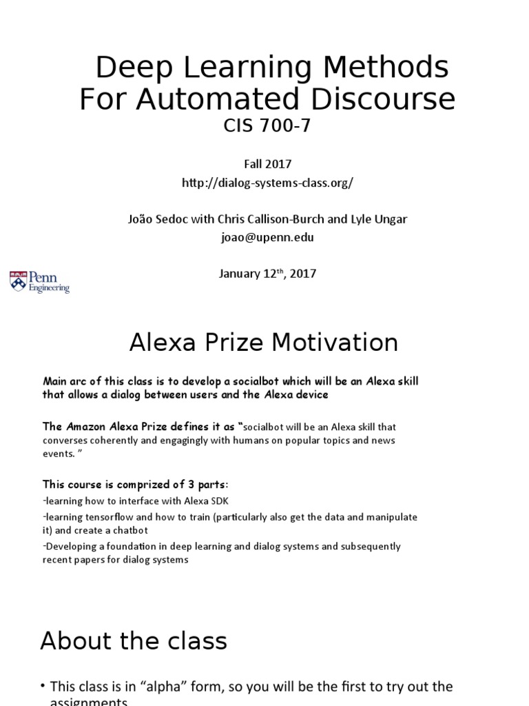 Main arc of this class is to develop a socialbot which will be an Alexa skill