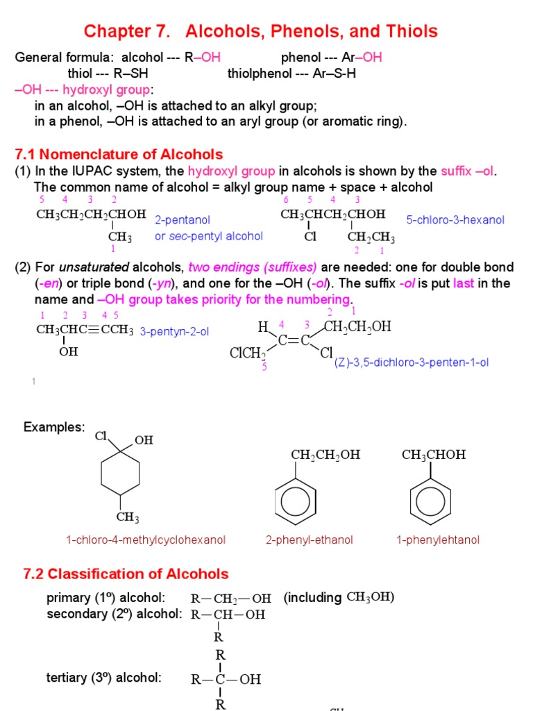 General formula: alcohol --- R–OH phenol --- Ar–OH