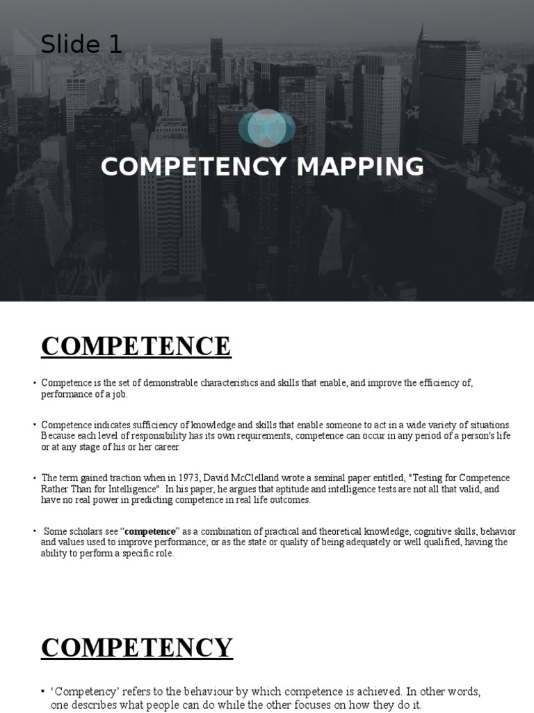 • Hence, Competency Mapping is a process of identifying key competencies for an