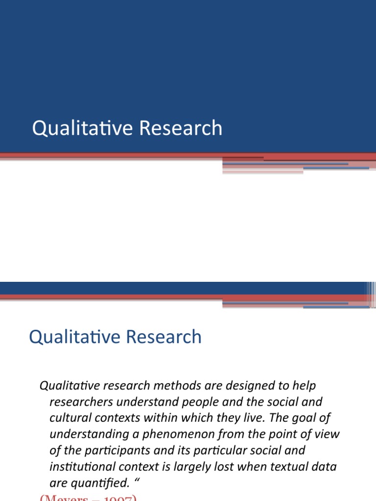 There is no single reality Therefore, reality needs Ethnography, Qualitative