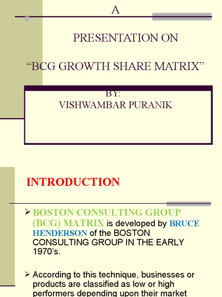“BCG GROWTH SHARE MATRIX”