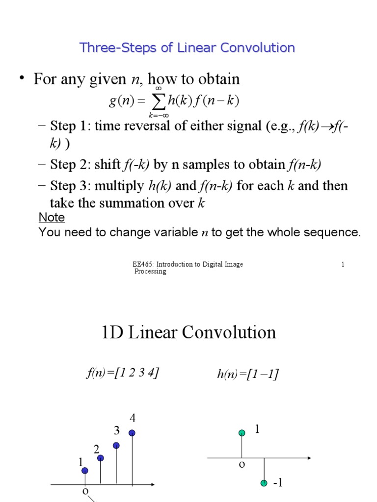 – Step 2: shift f(-k) by n samples to obtain f(n-k)