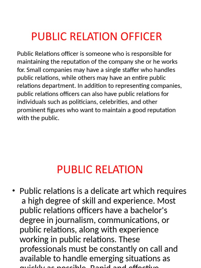 • Public Relations Officer works with the employer