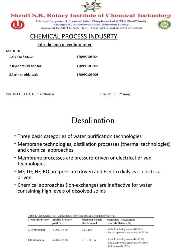 • Membrane technologies, distillation processes (thermal technologies)