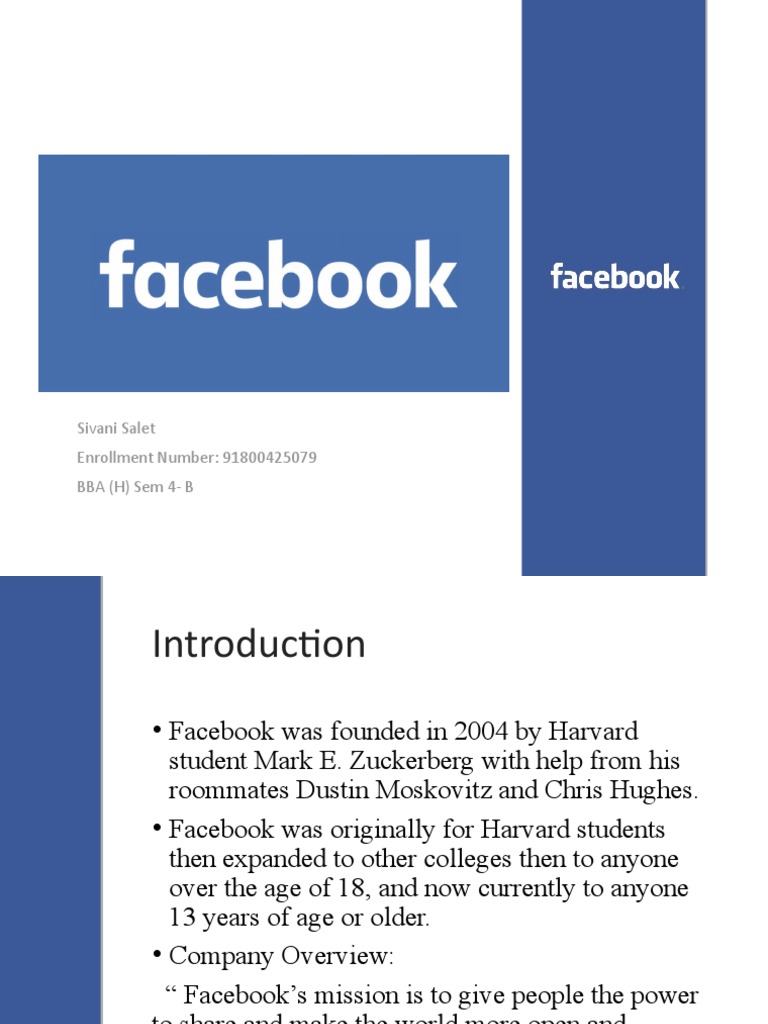 • Facebook was founded in 2004 by Harvard