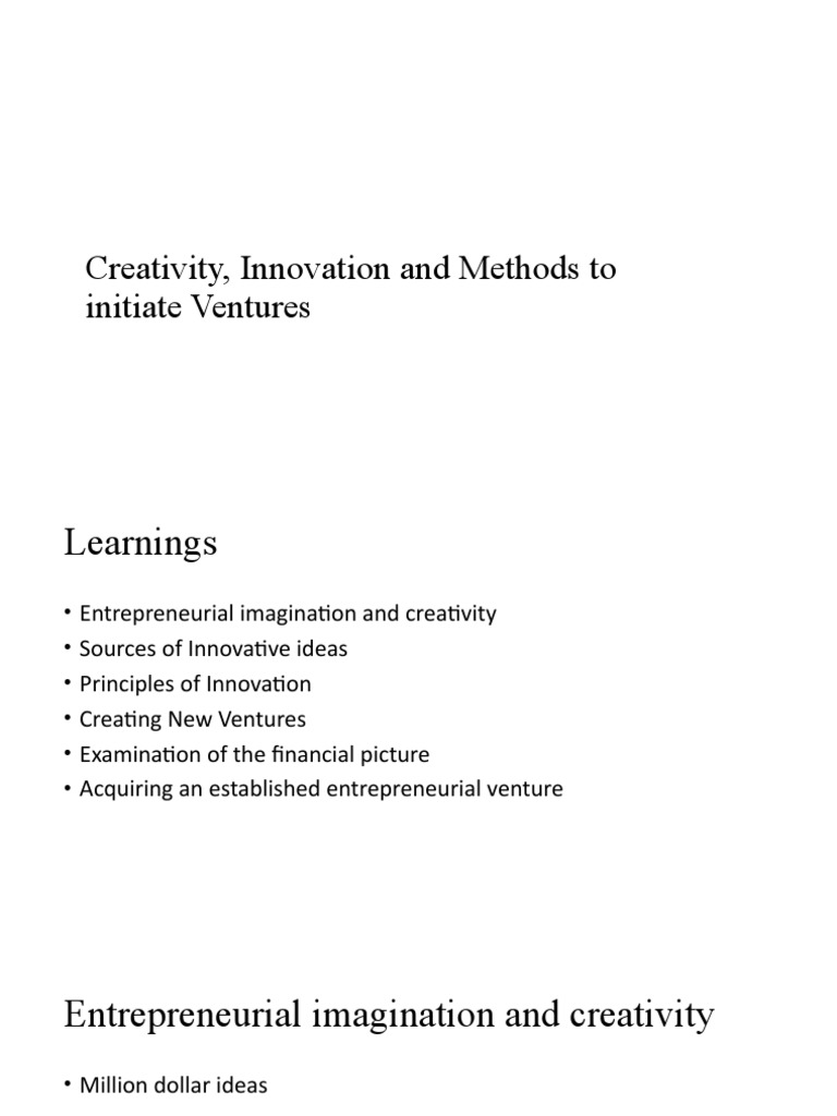 • Entrepreneurial imagination and creativity