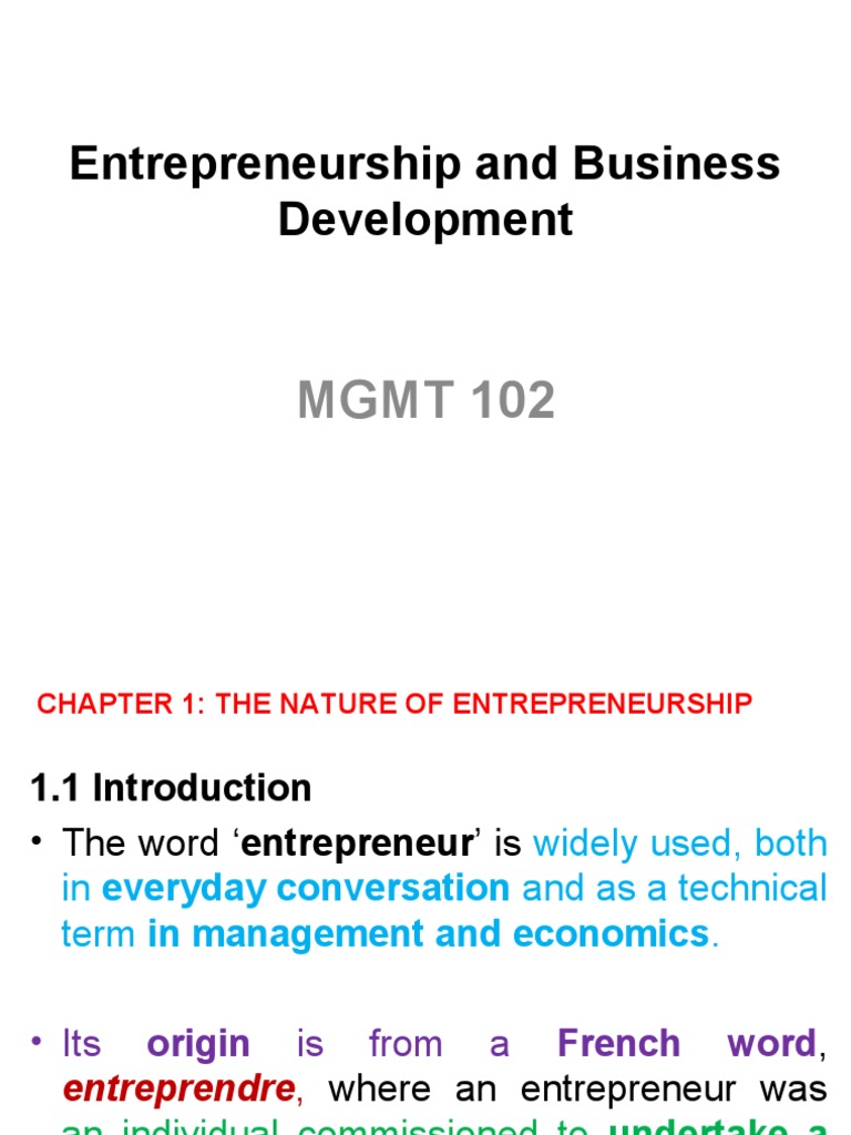 1.3 Definitions of Entrepreneurship and
