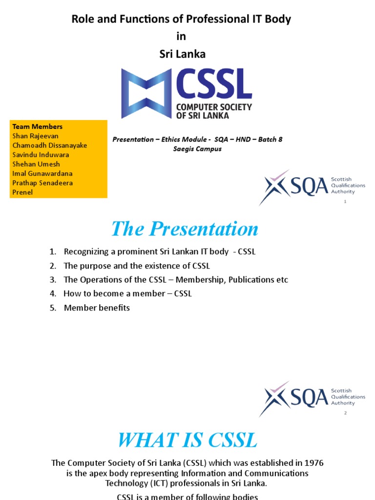 1. Recognizing a prominent Sri Lankan IT body - CSSL