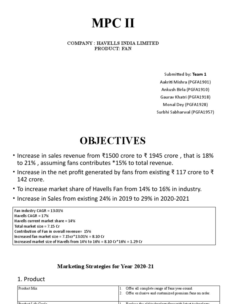 • To increase market share of Havells Fan from 14% to 16% in industry.