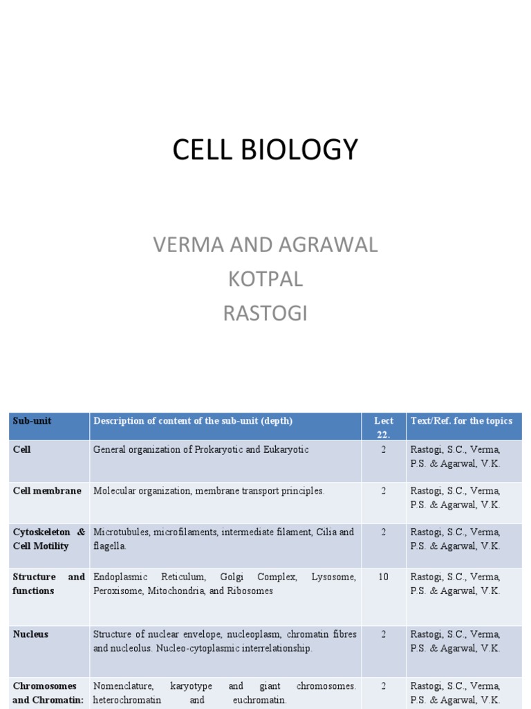 Cell General organization of Prokaryotic and Eukaryotic 2 Rastogi, S.C., Verma,