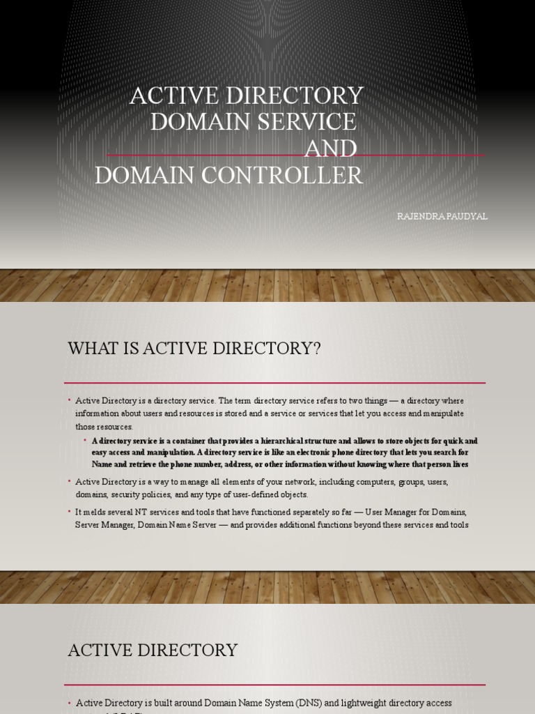 • Active Directory is a directory service. The term directory service refers to two things — a directory where