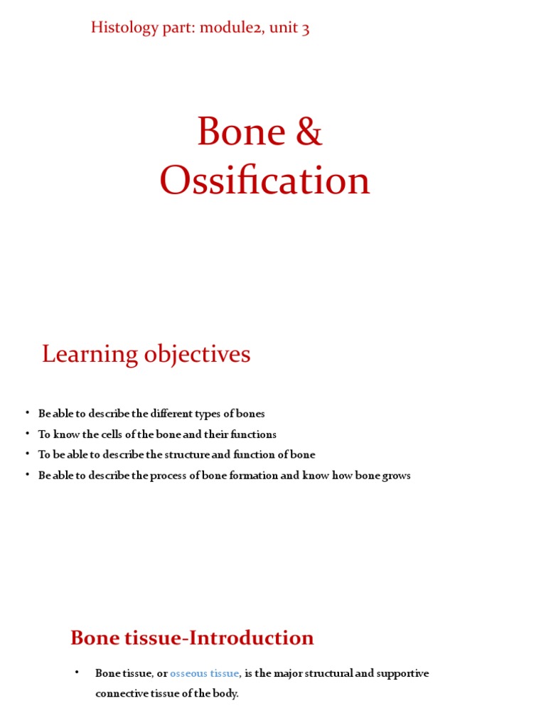 • Bone tissue, or osseous tissue, is the major structural and supportive