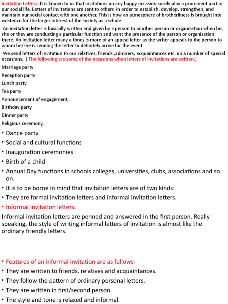 occasions. ( The following are some of the occasions when letters of invitations are written.)