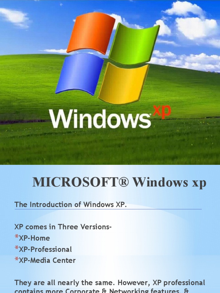 Welcome to Microsoft® Windows® XP Professional, the new version