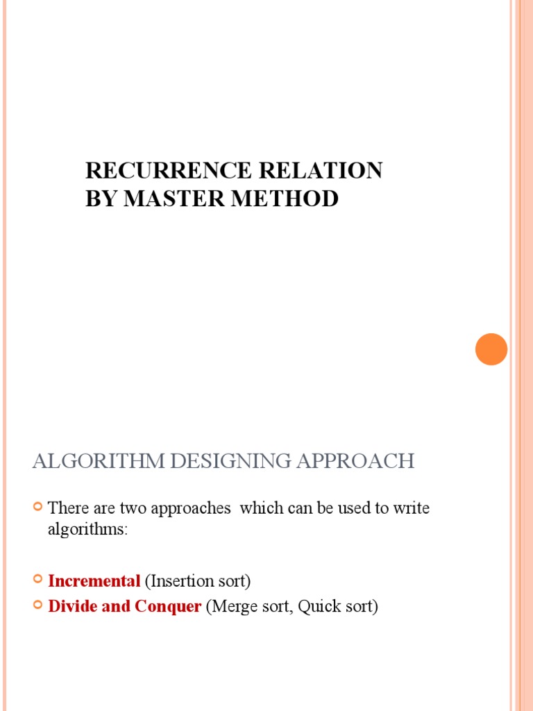 SOLVING RECURRENCES :THE MASTER