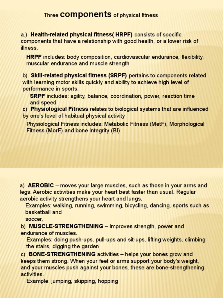 HRPF includes: body composition, cardiovascular endurance, flexibility,