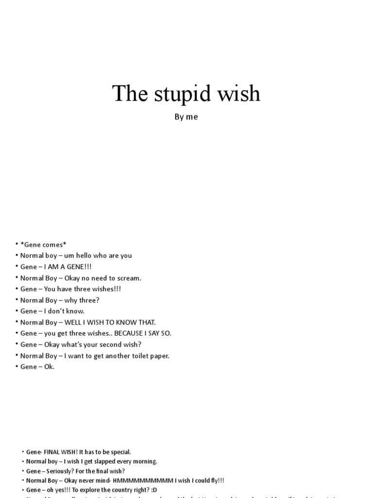 • Gene – you get three wishes.. BECAUSE I SAY SO.