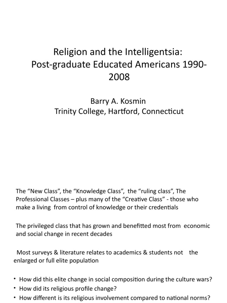 The New Class, the Knowledge Class, the ruling class, TheProfessional Classes plus many of the Creative Class -those whomake a living from control of knowledge or their credentialsThe privileged class that has grown and benefitted most fromeconomic and social change in recent decadesMost surveys & literature relates to academics & students not theenlarged or full elite population