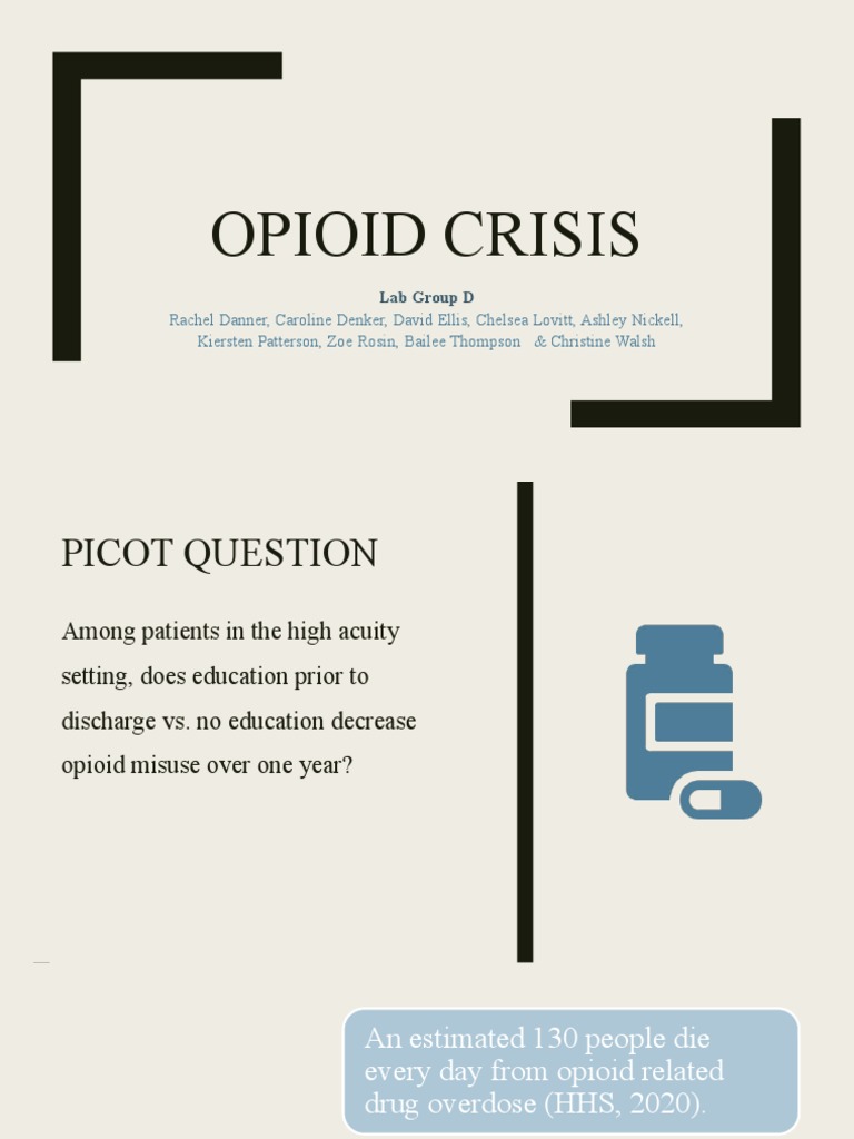 – Discharge teaching on safe opioid education will be maximized, reducing the risk of hospital