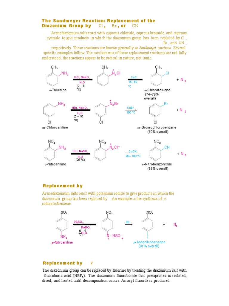 respectively. These reactions are known generally as Sandmeyer reactions. Several