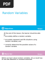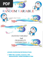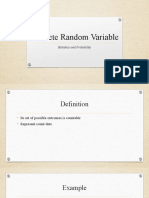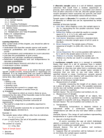 The document defines a sample space as the set of all possible outcomes of an experiment. For example, the sample space for tossing three coins would contain 8 possible outcomes listing the results of each coin toss. The possible values that the random variable representing the number of tails could take on for this experiment are {0,1,2,3}.
