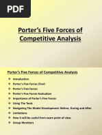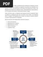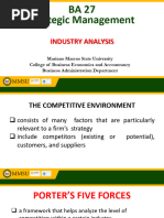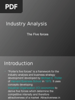 The document discusses the five competitive forces that shape industry competition - the threat of new entrants, the bargaining power of suppliers, the bargaining power of buyers, the threat of substitute products or services, and the intensity of rivalry among existing competitors. Together these competitive forces determine the inherent profitability of an industry and the strengths of individual companies within the industry.