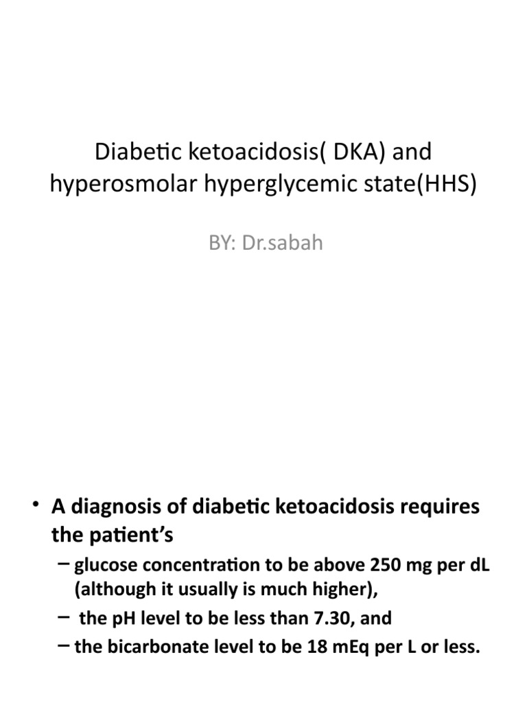 Diabetic Ketoacidosis (DKA) Hyperglycemic Hyperosmolar State (HHS)
