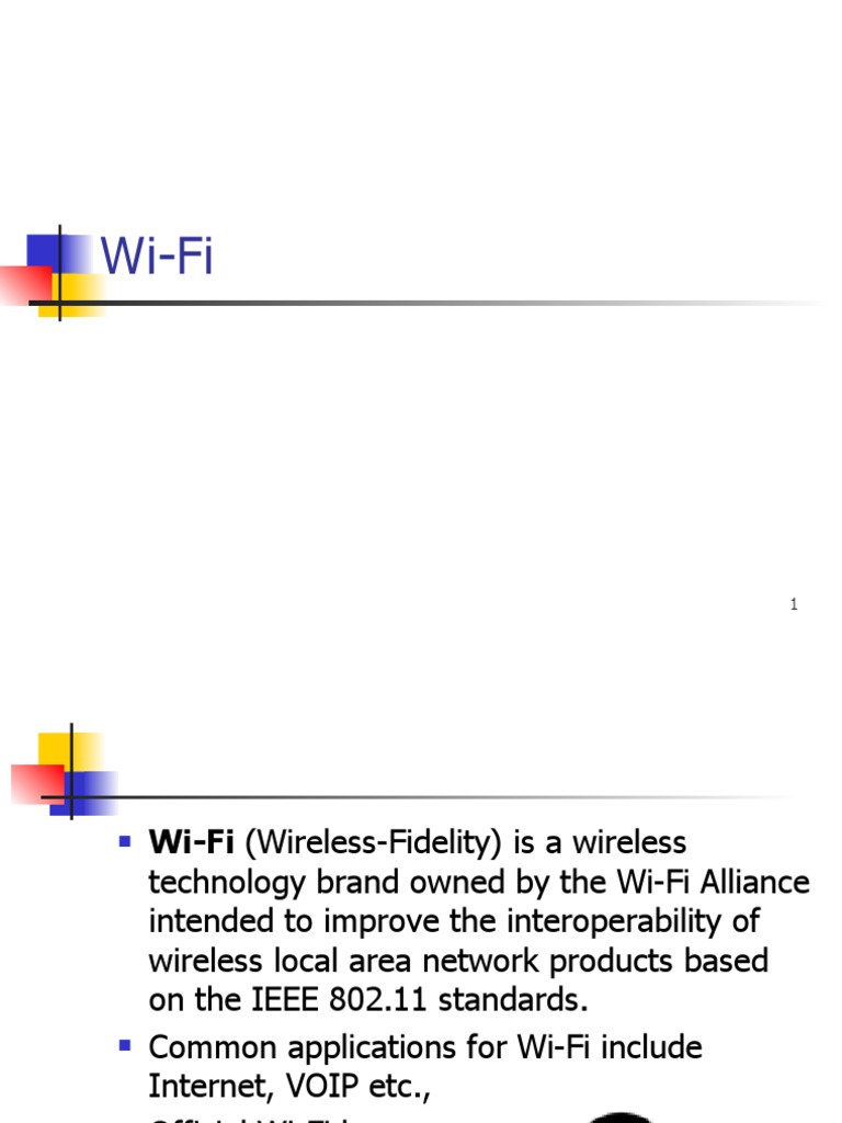 Wi-Fi (Wireless-Fidelity) is a wireless