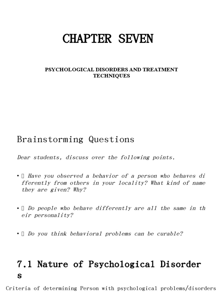 PSYCHOLOGICAL DISORDERS AND TREATMENT