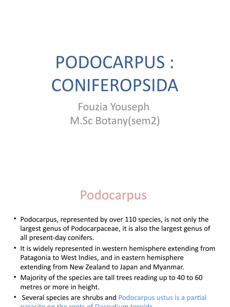 • In Podocarpus amarus, P.andinus, P gracilior etc., the zygotic nucleus