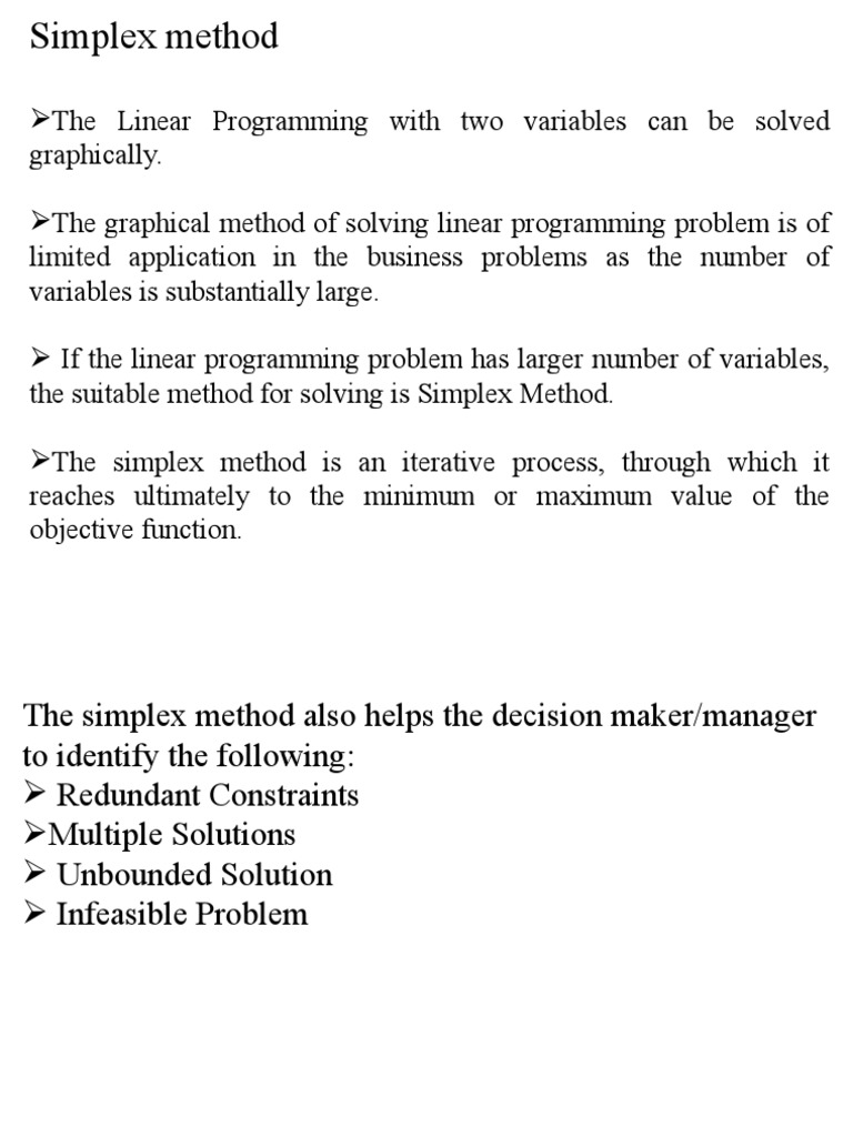 The simplex method also helps the decision maker/manager