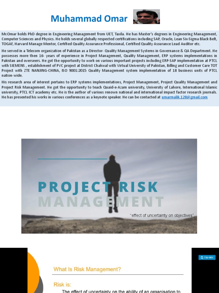 Project Risk Management. He got the opportunity to teach Quaid-e-Azam university, University of Lahore, International Islamic