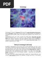 Cosmology is the branch of astronomy involving the