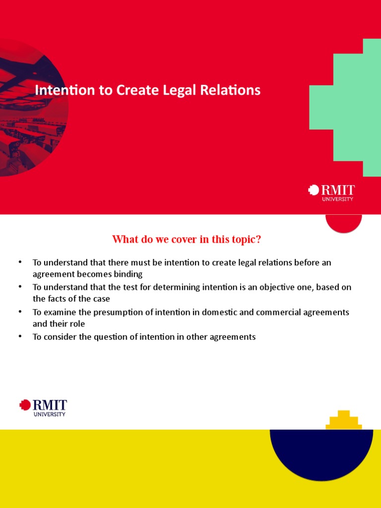 • Although it is customary to conceive of intention to create legal relations as a contractual