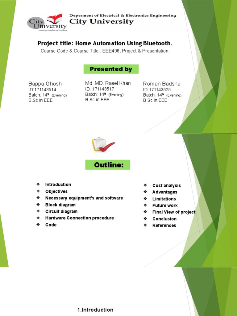 Project title: Home Automation Using Bluetooth.