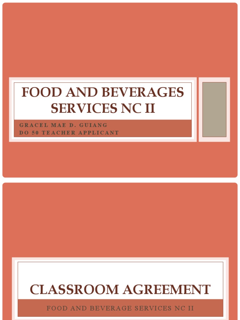 F O O D A N D B E V E R A G E S E RV I C E S N C I I