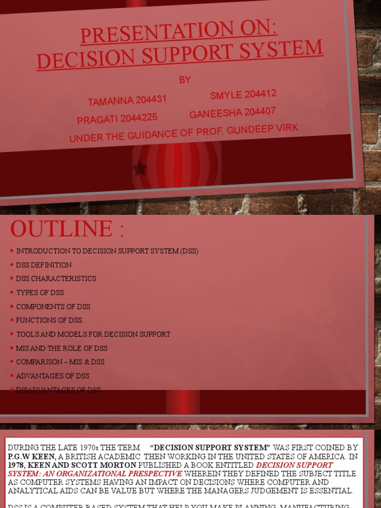 DSS IS A COMPUTER BASED SYSTEM THAT HELP YOU MAKE PLANNING, MANUFACTURING,