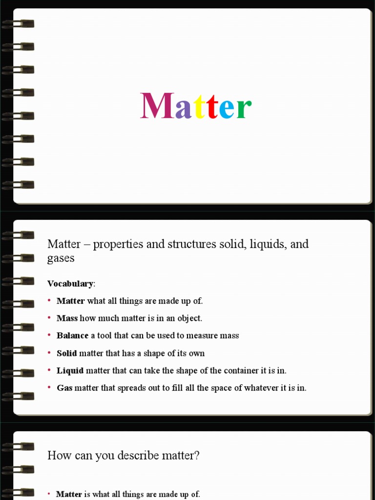 Matter – properties and structures solid, liquids, and