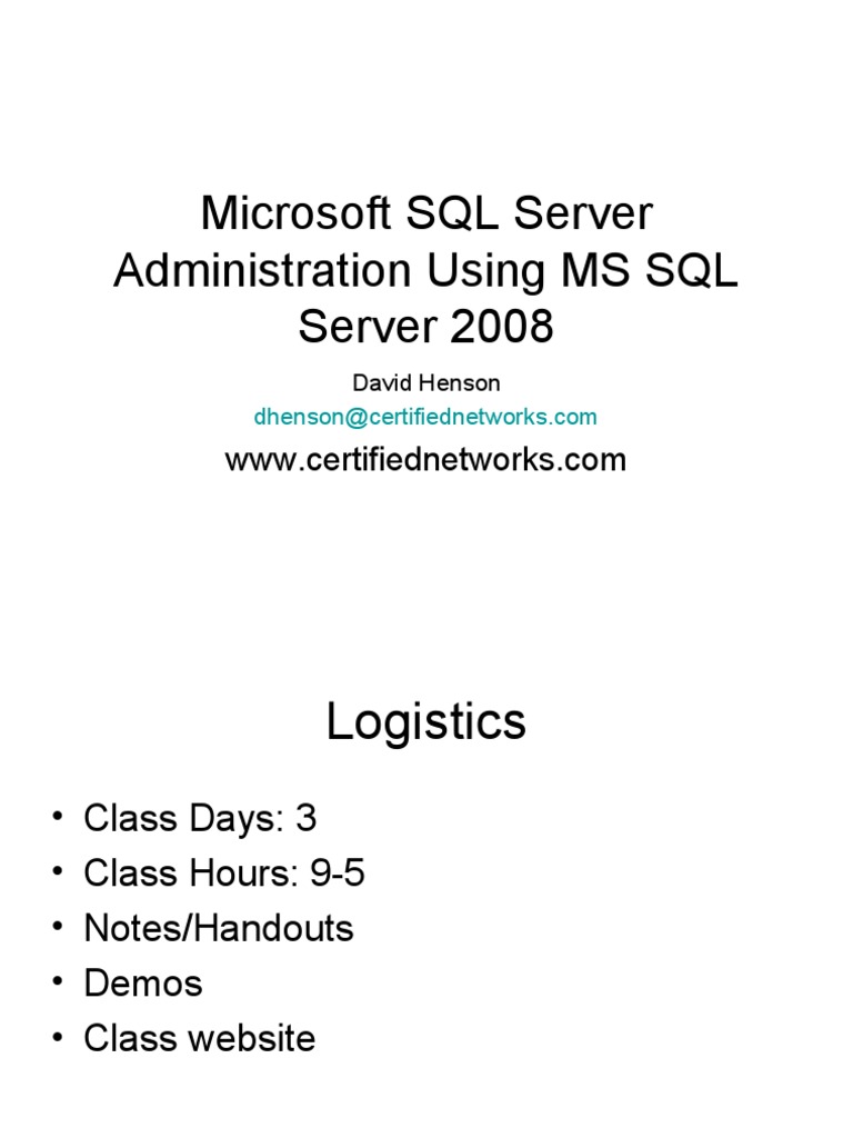 Administration Using MS SQL