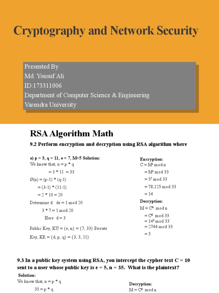 9.2 Perform encryption and decryption using RSA algorithm where